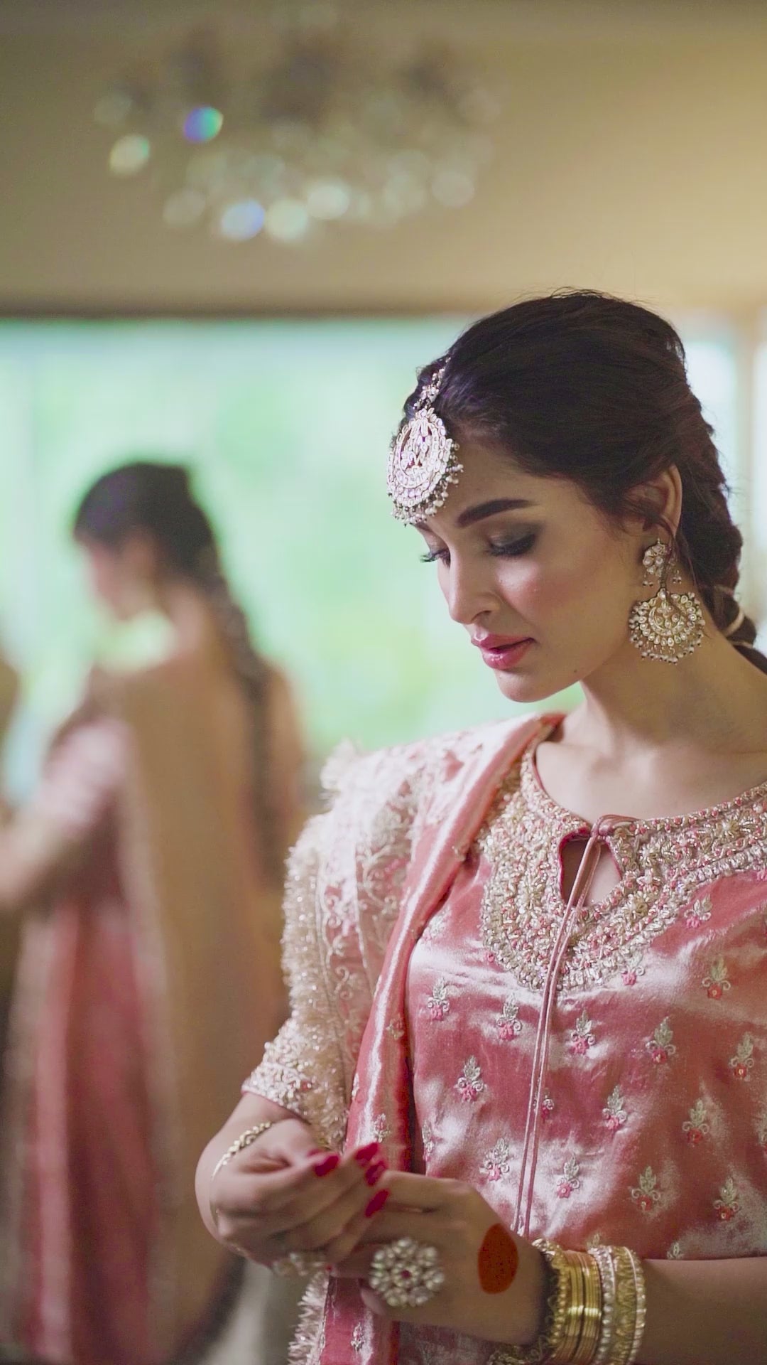 Dainty embellishment and sequences cascading over a delicate coral pure masuri tissue canvas. Paired with an exquisite coral dupatta adorned in kiran lace on all sides, and a pure tissue churidar; this exotic hand embellished piece by Maria Ali is an art of sheer delicacy. This Shirt can also be paired with Aazar pants and staright pants.