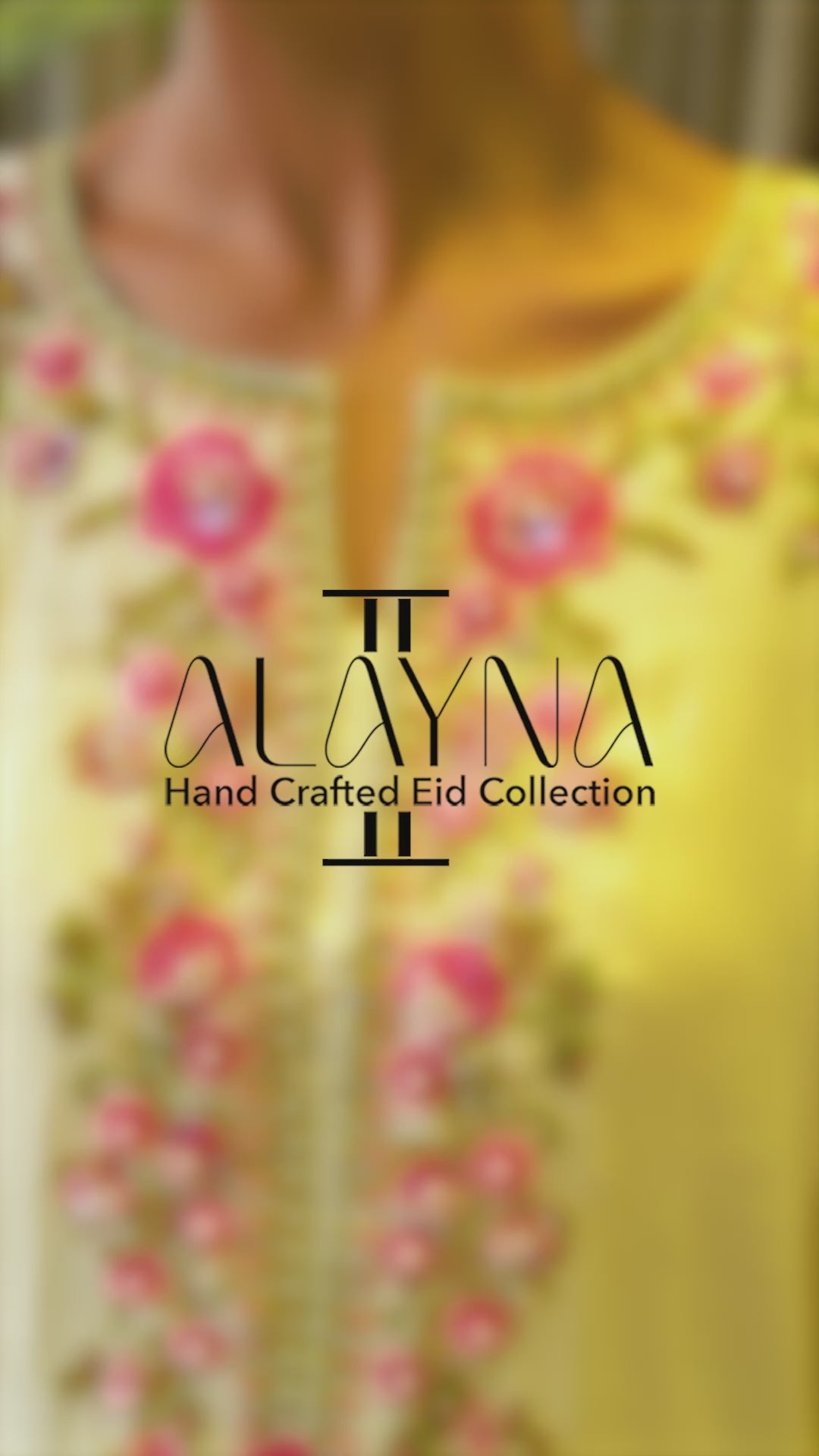 An eye catching ivory ensemble with multi coloured embroidered borders, inserted laces and an extra ordinary hand embellished neckline making it an eid master piece this summer, paired with an embroided culottes and heavily embroided organza duppatta and lace finishings