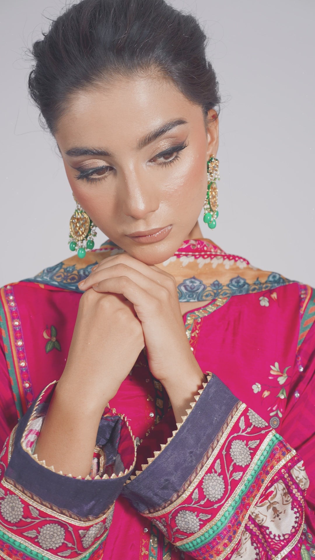Each of our composed printed dresses is designed with exceptional attention to detail, ensuring timeless elegance and craftsmanship. Meticulously stitched and finished with intricate Gota edgings, this ensemble features exquisite hand-crafted embroidery that adds dimension and allure throughout the shirt.