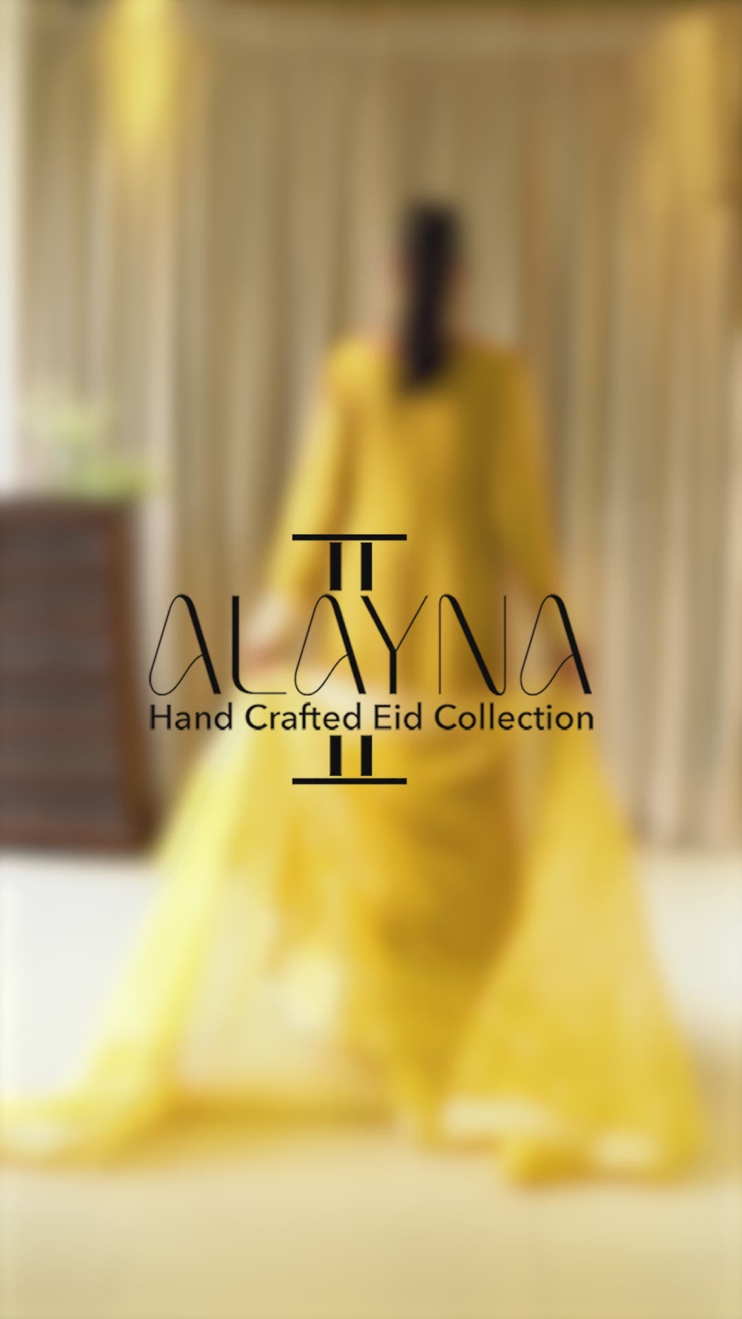 An extremely subtle mustard kalidar with hand embellished neckline and beautifully embroided borders on flare and sleeves finished with delicate lace, paired with heavily embroided organza dupatta.