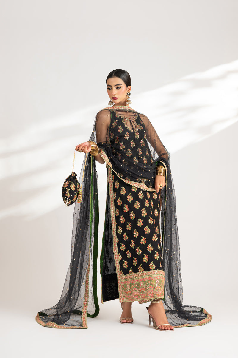 Summer evenings and Eid soirees just got finer with this classic outfit, adorned with intricate hand embellishment and embroidery making it a must-have this season.