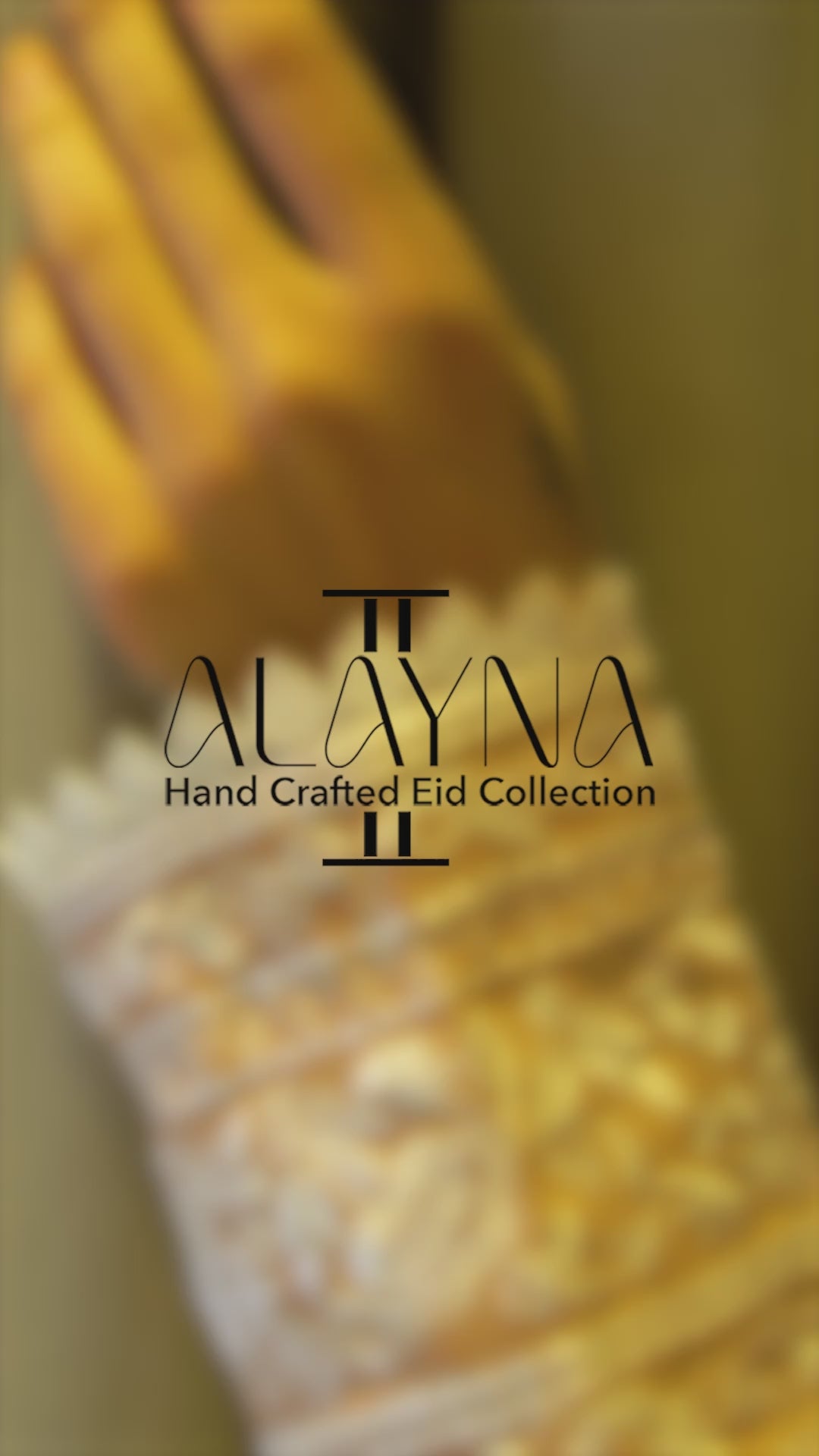 A magnificent beige ensemble with an extreme elaborated embroided borders on the hem and the sleeves, The look is completed with an intricate hand embellished neckline speaking for itself. This outfit is paired with a cigerette pants and heavily embroided organza dupatta finished with lace.